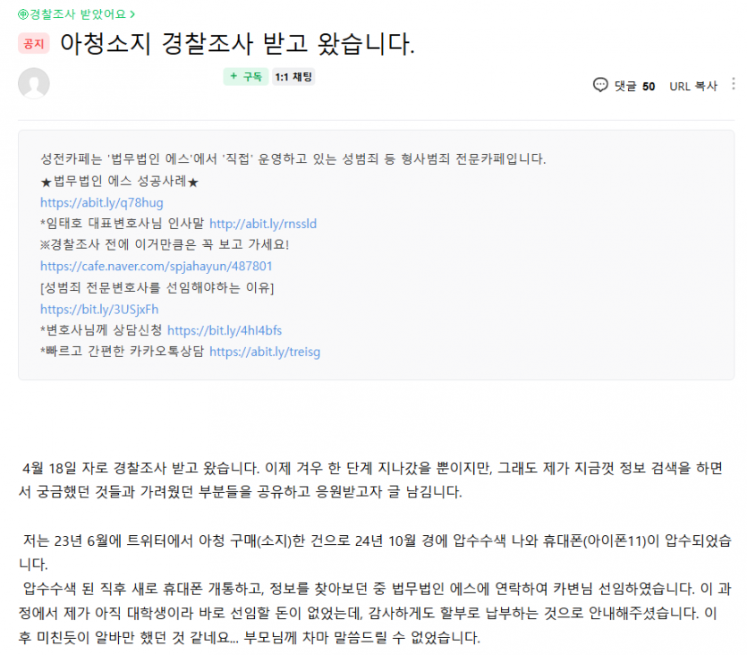 저는 23년 6월에 트위터에서 아청 구매(소지)한 건으로 24년 10월 경에 압수수색 나와 휴대폰(아이폰11)이 압수되었습니다.