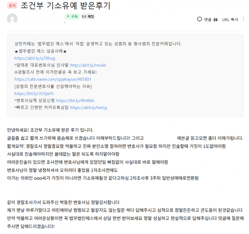 아청성매수 일반성매매로 인정, 조건부 기소유예 후기