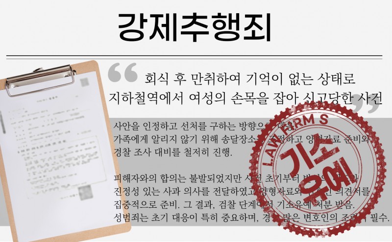 회식 후 만취하여 기억이 없는 상태로 지하철역에서 여성의 손목을 잡아 신고당한 사건 |