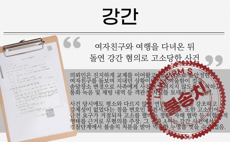 행태를 근거로 무혐의를 주장. 그 결과 A씨는 강간 사건에서