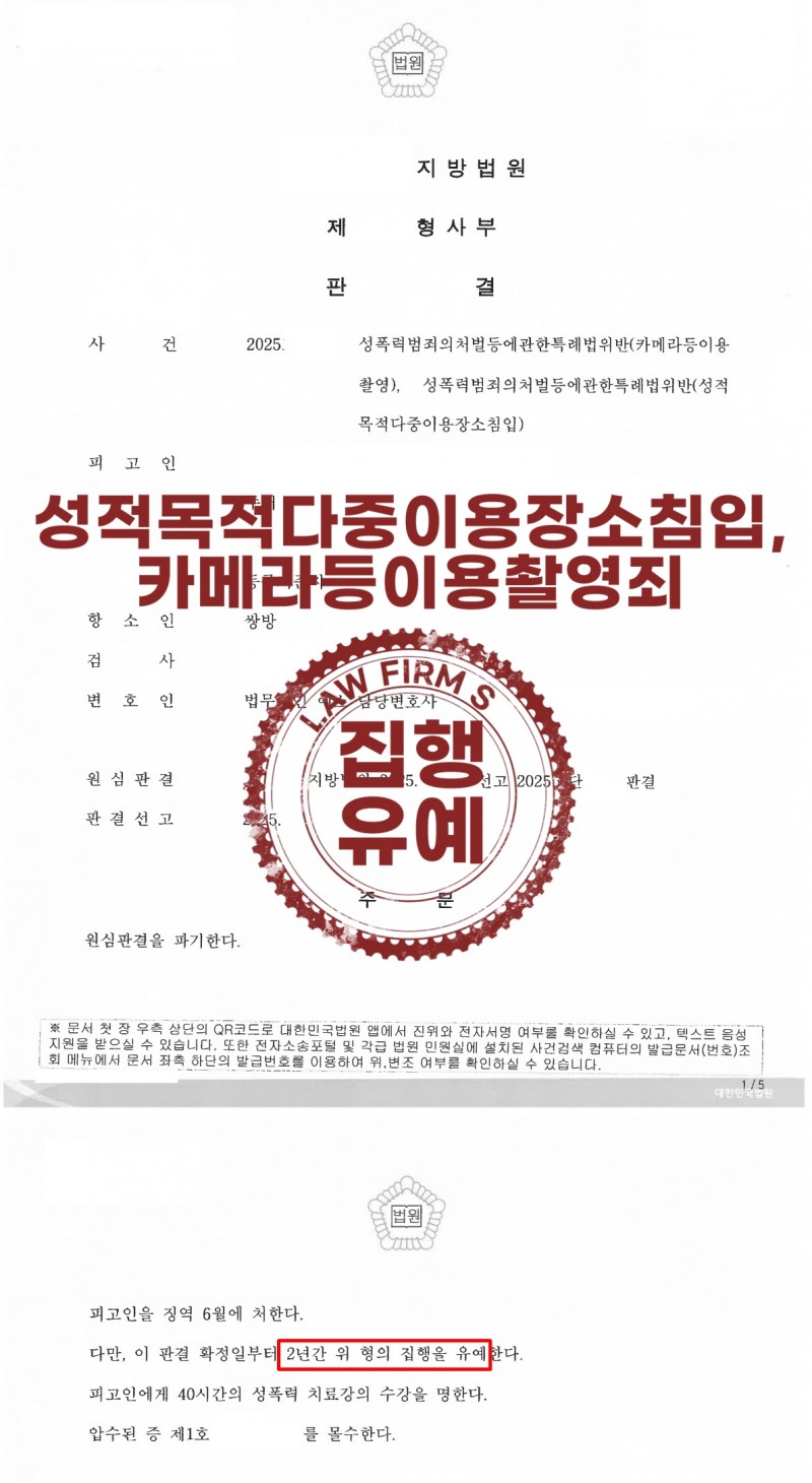서초 법무법인 에스 성범죄 성공사례 | 성목공카촬 항소심 집행유예