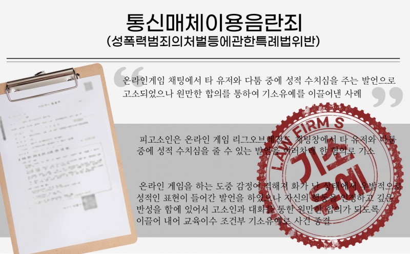 온라인게임 채팅에서 타 유저와 다툼 중에 성적 수치심을 주는 발언으로 고소되었으나