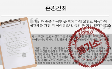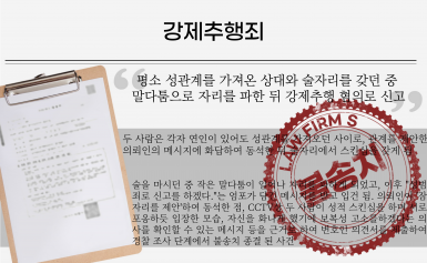소개팅 어플에서 만난 여성과 교제 중갑자기 강제추행 혐의로 입건된 사건 공무원 신분이었던 의뢰인은 벌금 100만 원 이상 선고 시,퇴직될 위험이 있었기에 수사단계에서 불송…