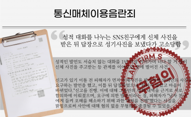 소개팅 어플로 만난 여성과 단기간 교제를 이어가며합의하에 찍은 관계 영상과 관련하여 유포죄로 고소당한 사건 공무원 신분이었기에 혐의 인정 시 치명적인 처분을 받을 우려로무…