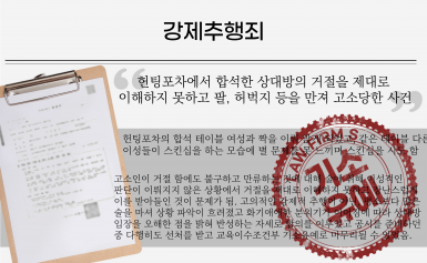 상담소 운영 중, 예전에 상담했던 학생의 부모로부터딸 추행 혐의를 제기 받아 고소당한 사건 미성년자 강제추행 혐의로 기소되어 생업에 치명적인 영향을우려한 의뢰인은 무죄 판…